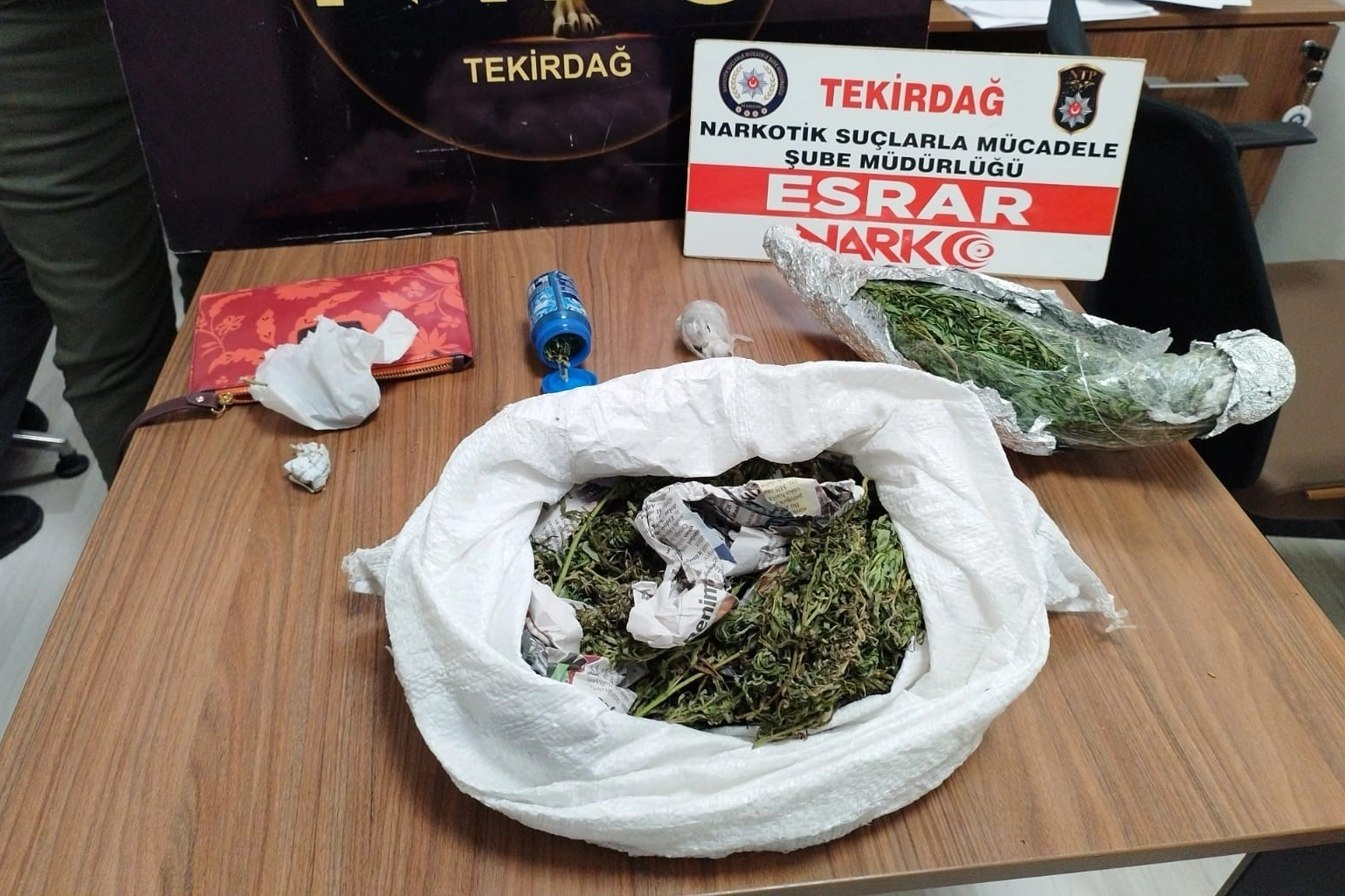 Tekirdağ İl Emniyet Müdürlüğü Narkotik Suçlarla Mücadele Şube ekipleri ve Süleymanpaşa İlçe Emniyet Müdürlüğü görevlilerince Süleymanpaşa ilçesi Çiftlikönü Mahallesi'nde bir adrese operasyon düzenlendi. Adreste yapılan aramada, toplam 1 kilo 71 gram esrar maddesi ele geçirildi. Konu ile ilgili Ü.I., D.K., E.Ş., H.D., Ç.Y., H.M., İ.K., C.A.Ö. ve S.K. isimli şahıslara uyuşturucu madde bulundurmak ve kullanmak suçundan işlem yapıldı. Firar İ.F. isimli şahıs ise yakalanarak hakkında uyuşturucu madde ticareti yapmak, uyuşturucu madde kullanımı için yer temin etmek ve uyuşturucu madde kullanmak suçlarından gerekli işlemler başlatılarak şahıs sevk edildiği adliyede tutuklandı.