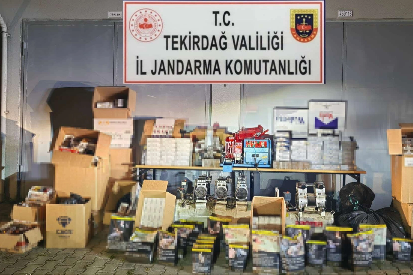 Tekirdağ'ın Kapaklı ilçesi Atatürk Mahallesinde bulunan, işletmeciliğini M.K., S.Ç. isimli şahısların yaptığı iş yerlerinde boş makaronlara otomatik makineler ile tütün doldurulmak suretiyle satıldığının tespiti üzerine Tekirdağ İl Jandarma Komutanlığı ekiplerince arama yapıldı. Yapılan aramada, 70 bin 800 adet boş makaron, 16 bin 940 adet dolu makaron, 30 kilogram bandrolsüz tütün, 19 kilogram bandrolsüz nargile tütünü, 2 adet otomatik makaron doldurma makinesi, 2 adet kompresör, 300 adet boş sigara kutusu ele geçirildi. Ele geçirilen malzemelerinin yaklaşık piyasa değerinin 250 bin TL. olduğu tespit edildi. 2 şüpheli şahsın ifadesi alınarak serbest bırakıldı.