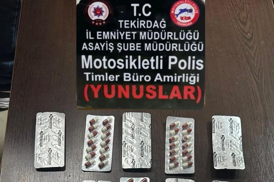 Tekirdağ İl Emniyet Müdürlüğü Asayiş Şube Müdürlüğü Motosikletli Polis Timleri Büro Amirliği ekiplerinin çalışmaları sürüyor. Süleymanpaşa ilçesine bağlı Aydoğdu Mahallesi'nde B.F. isimli şahıstan 20 tablet halinde 280 adet sentetik ecza ele geçirildi. Konu ile ilgili B.F. isimli şahıs, uyuşturucu madde ticareti yapmak suçundan gözaltına alınarak çıkarıldığı adli makamlarca tutuklanarak cezaevine teslim edildi.