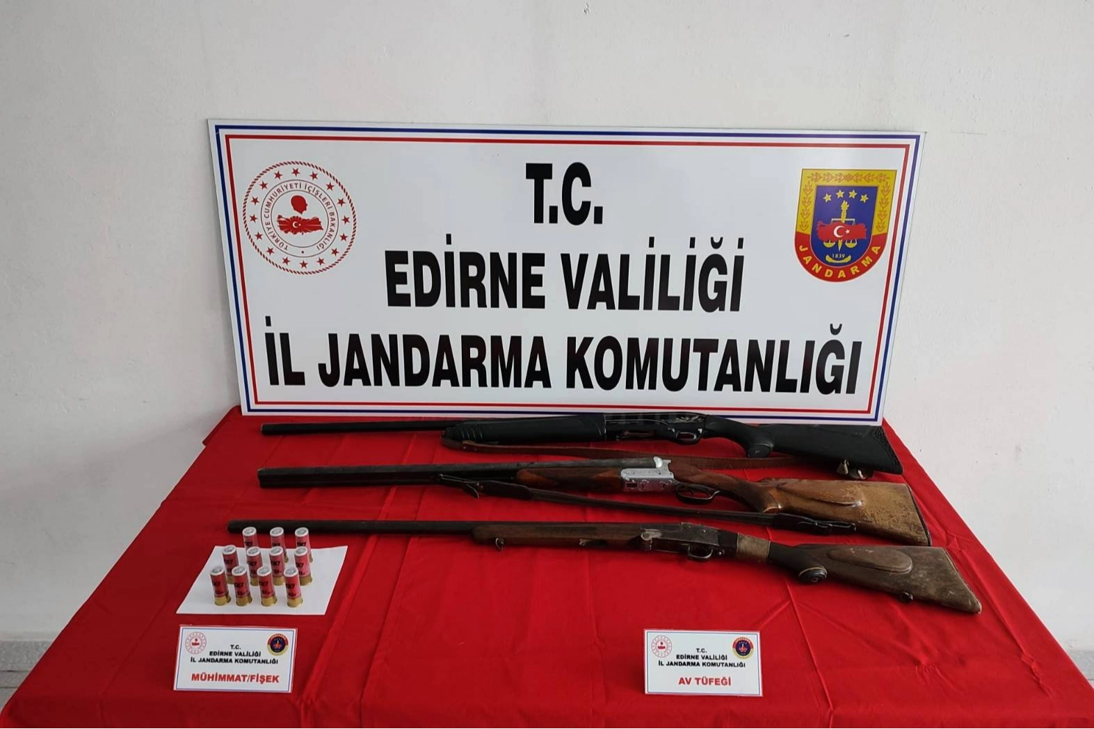 Edirne İl Jandarma Komutanlığı Kaçakçılıkla Mücadele Şube Müdürlüğü ekipleri tarafından gerçekleştirilen çalışmalar sonucunda, Uzunköprü ilçesinde 2 şahsın evinde yapılan aramada 3 adet ruhsatsız av tüfeği ve 11 adet av tüfeği fişeği ele geçirildi.
