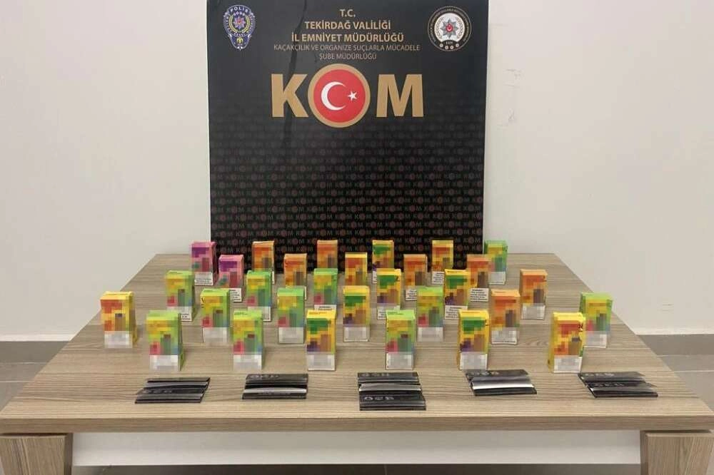 Tekirdağ İl Emniyet Müdürlüğü KOM Şubesi ekiplerince, Çerkezköy ve Süleymanpaşa ilçelerinde yasadışı tütün ve tütün mamulleri satışının önlenmesine ve deşifre edilmesine yönelik çalışmalar sürüyor. Yapılan çalışmalarda 5 işyerinde yapılan aramalarda, 191 adet elektronik sigara likiti, 137 adet elektronik sigara filtresi, 53 adet değişik markalarda elektronik sigara, 1 adet elektronik sigara başlığı, 320 adet sigara sarma kağıdı, 720 adet içi tütün ile doldurulmuş makaron ele geçirildi.
