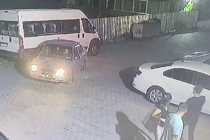 Geri seyreden otomobilin minibüse ve çöp konteynerine çarptığı kaza anı ise kameraya yansıdı.