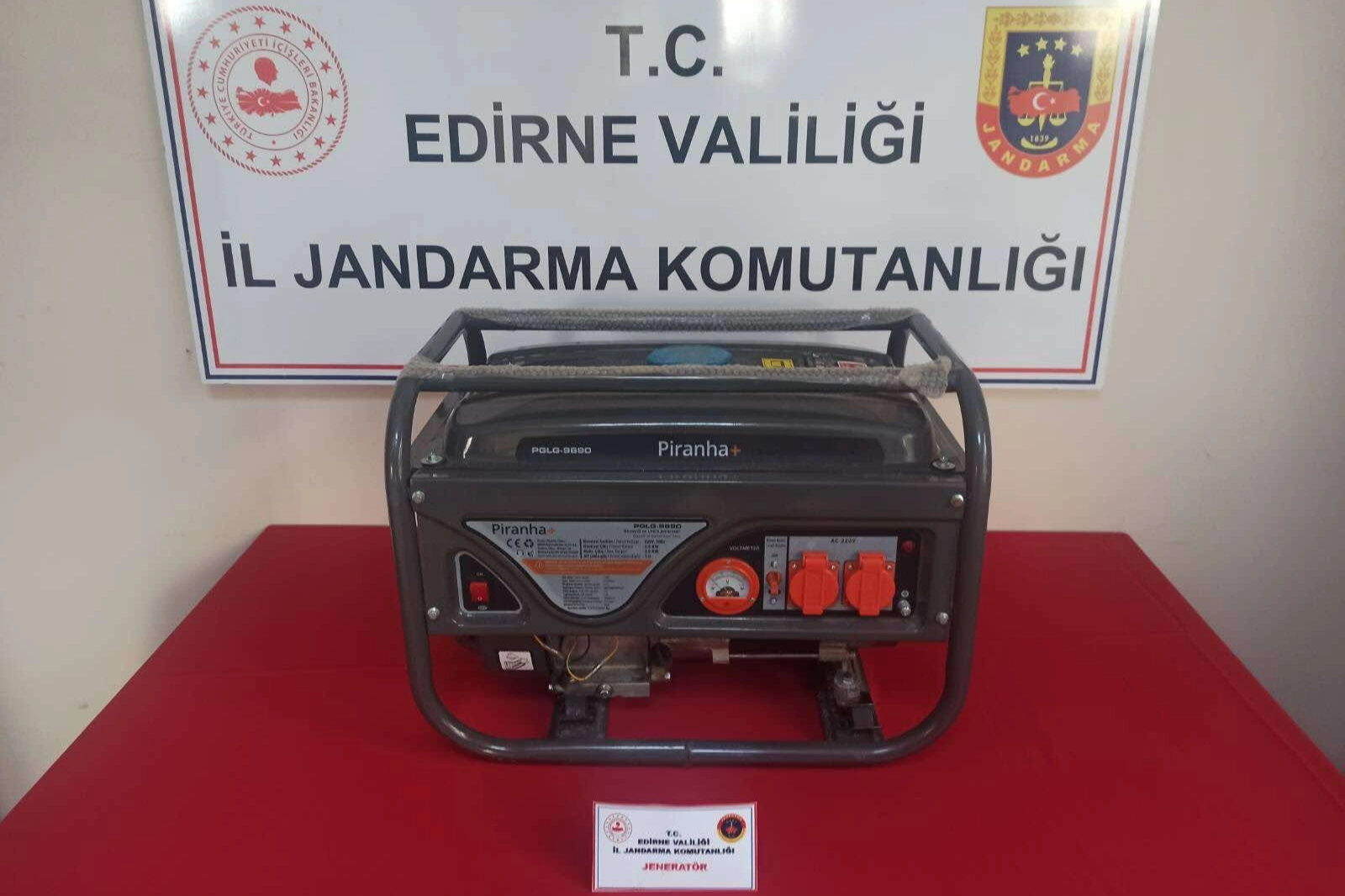 Edirne İli Keşan İlçe Jandarma Komutanlığı sorumluluk bölgesinde bulunan Çamlıca köyünde yaşayan bir vatandaş, elektrik jeneratörünün kimliği belirsiz kişilerce çalındığını bildirerek komutanlığa başvurdu. JASAT ve Asayiş timleri tarafından yapılan araştırma ve soruşturma sonucunda, jeneratörün Keşan ilçesinde ikamet eden L.U. isimli bir kişi tarafından çalındığı ve evinde saklandığı tespit edildi. Olayla ilgili olarak 1 şüpheli şahıs yakalanarak adli işlem başlatıldı ve çalınan elektrik jeneratörü sahibine iade edildi.