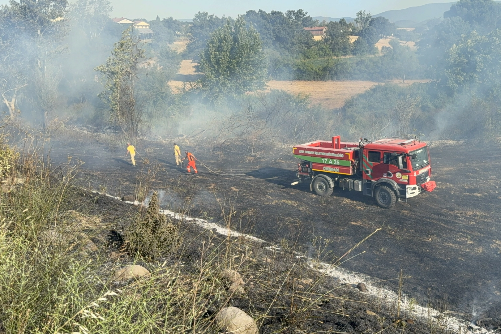 Çan ilçesine bağlı Ahlatlıburun köyünde otluk alanda henüz bilinmeyen bir nedenle yangın çıktı.