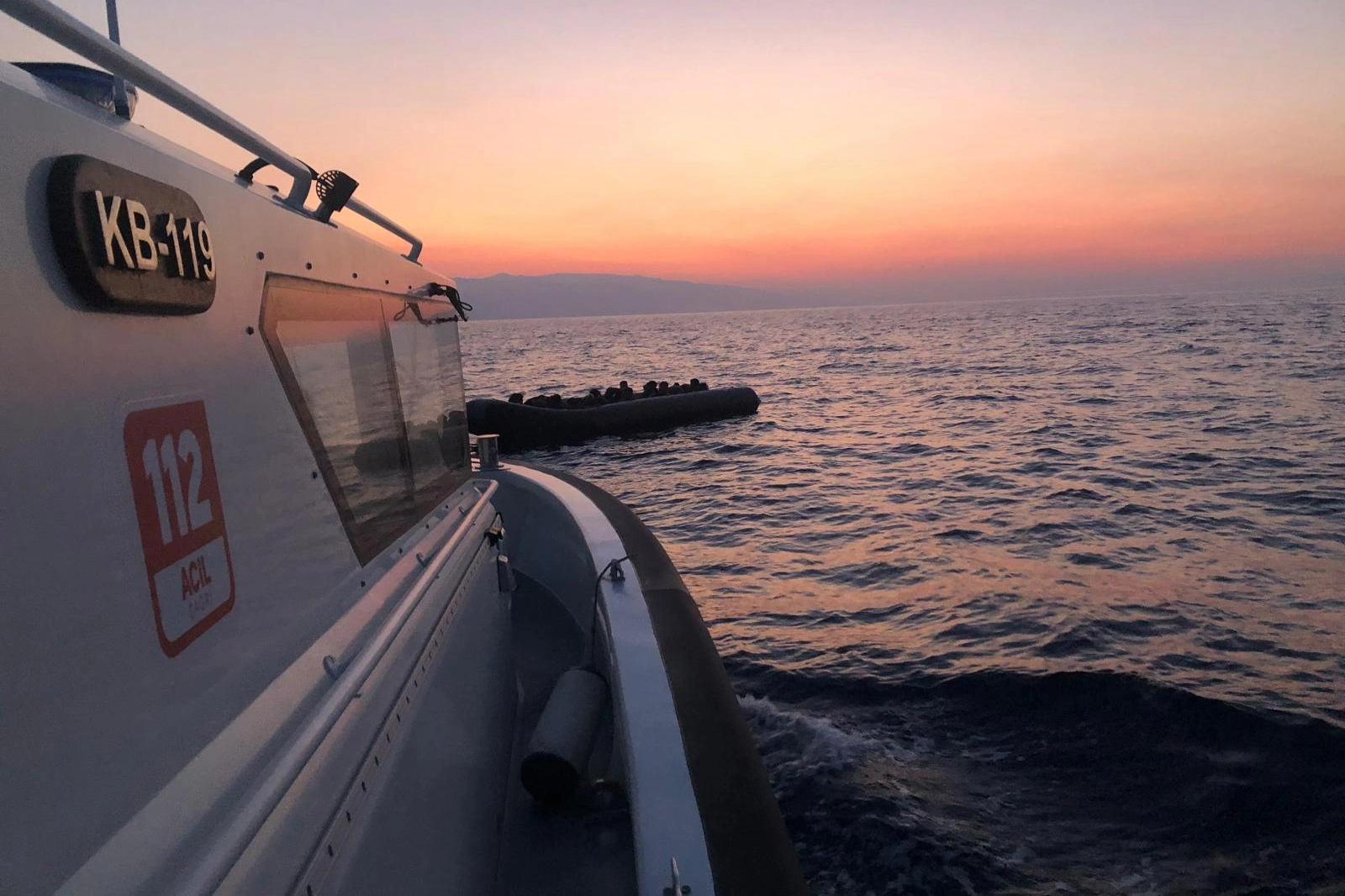 Lastik bot içinde 13'ü çocuk 34 düzensiz göçmen yakalandı.