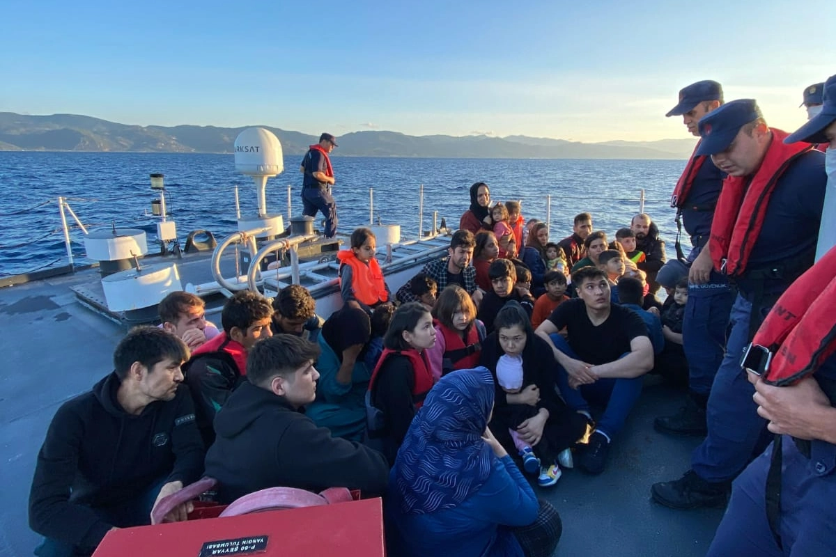 Bölgeye giden Sahil Güvenlik gemisi "TCSG-84" ile "KB-111" botu unsurları, lastik bottaki Afganistan uyruklu 20'si çocuk 37 düzensiz göçmeni kıyıya getirildi.