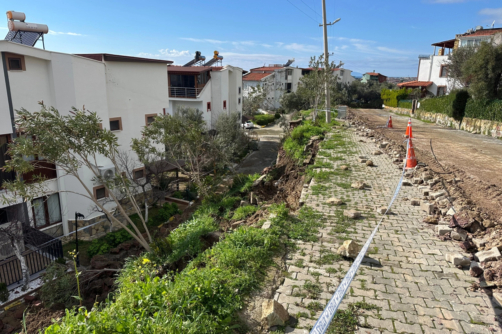 Çöken duvarın çevresinde güvenlik önlemi alındı.