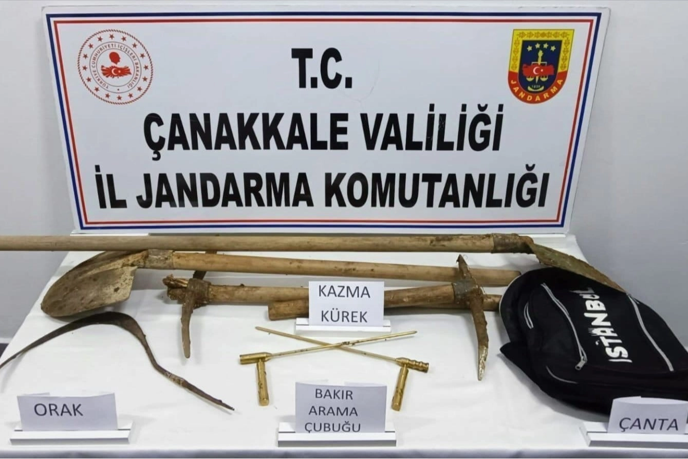 Çanakkale Cumhuriyet Başsavcılığı koordinesinde yapılan çalışmalar neticesinde İl Jandarma Komutanlığı ekiplerince Biga ilçesinde düzenlenen operasyonda kaçak kazı yapan 7 şüpheli suçüstü yakalandı. Gözaltına alınan şüphelilerin ikametlerinde yapılan aramalarda, 4 kürek, 4 kazma, balta, el dedektörü, orak, 4 bakır altın arama çubuğu, kafa lambası ve maket bıçağı ele geçirildi. Hakkında yasal işlem başlatılan şüphelilerin jandarmadaki işlemleri devam ediyor.