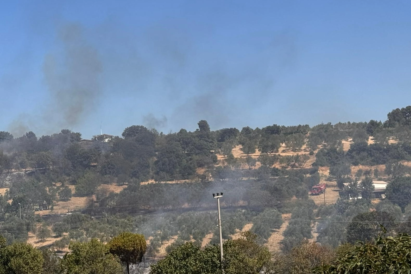 Büyük ölçüde kontrol altına alınan yangın bölgesindeki soğutma çalışmasının sürdüğü ifade edilen açıklamada, yerleşim birimini tahliyeyi gerektirir bir durum bulunmadığı kaydedildi.