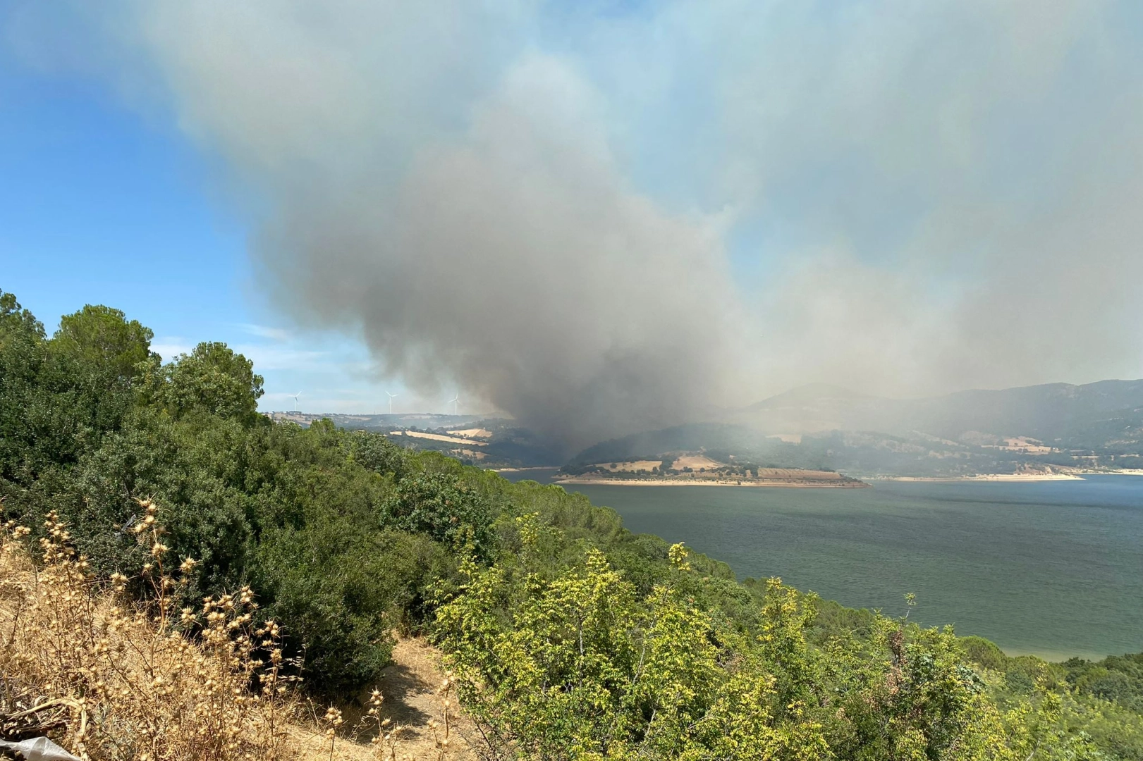 Yangın, rüzgarın da etkisiyle çevredeki arazilere ve ormanlık alana da sıçradı.