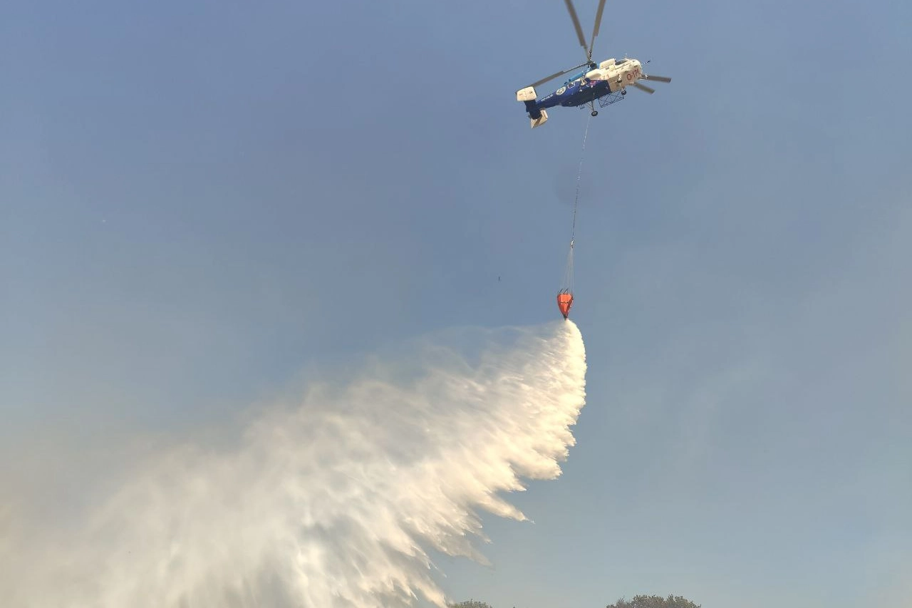 Çanakkale Orman Bölge Müdürlüğüne bağlı ekipler, kuvvetli rüzgarın da etkisiyle geniş bir alana yayılan yangının ormanlık alana sıçramasını önlemek için çalışmalarını havadan ve karadan sürdürüyor.