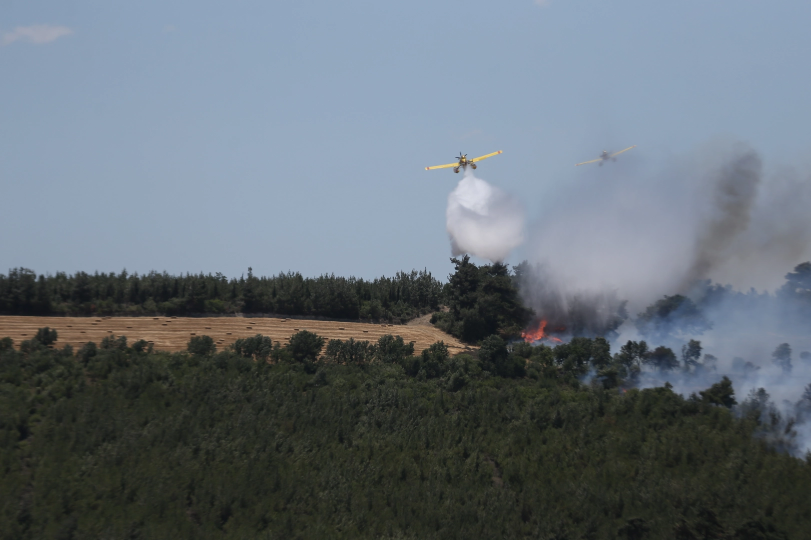Rüzgarın etkisiyle ormanlık alana yayılan yangına müdahale için Orman Bölge Müdürlüğüne bağlı helikopterler ve uçaklar ile havadan, yer ekipleriyle de karadan müdahale başladı.