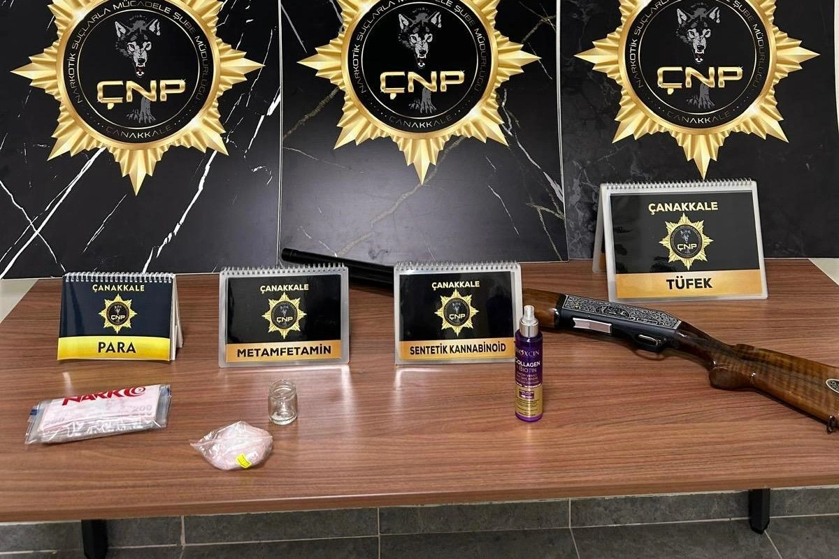 Yapılan aramalarda 316 gram narkotik madde, 50 uyuşturucu hap, ruhsatsız av tüfeği, tabanca ve fişek ile suçtan elde edildiği değerlendirilen 17 bin 220 lira ele geçirildi.
