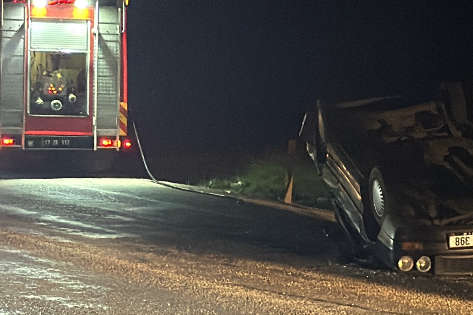 Çarpışmanın etkisiyle kontrolden çıkan 17 KR 525 plakalı otomobil şarampole devrildi, diğer araç ise ters döndü.