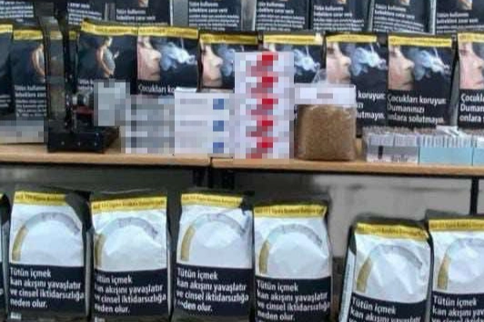 Aramada 10 kilogram kaçak tütün, 400 dolu makaron (filtreli sigara kağıdı), 11 bin 500 boş makaron ve sigara doldurma makinesi ele geçirdi.