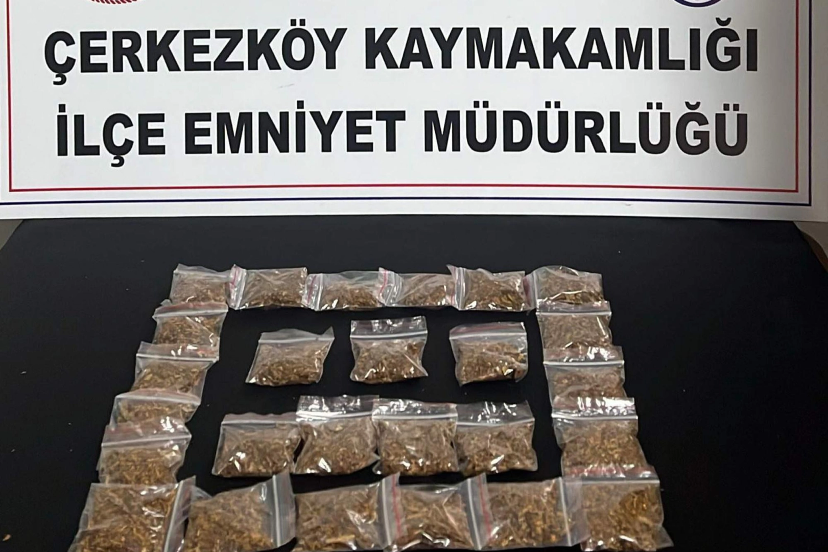 Çerkezköy İlçe Emniyet Müdürlüğü ekiplerinin yaptığı çalışmada Bağlık Mahallesi'nde Abdulsamet K. ve Bilal Taha K.'nin motosiklet kullanarak uyuşturucu satışı yaptığını belirledi. Takibe alınan şüphelilerin kullandığı motosiklet durdurulup, üzerlerinde arama yapıldı. Aramada, satışa hazır 26 paket halinde 80 gram bonzai ele geçirildi. Abdulsamet K. ve Bilal Taha K., emniyetteki işlemlerinin ardından adliyeye sevk edildi.
