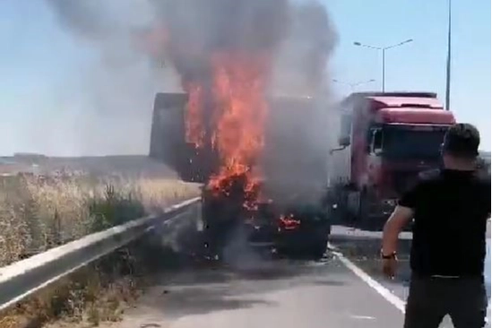 Olay, Ergene ilçesinde çevreyolu üzeri Cumhuriyet Mahallesi mevkiinde meydana geldi. Çorlu istikametinden Marmaracık Mahallesi yönüne seyreden Şevki S. idaresinde, Çerkezköy Belediyesi bünyesinde hizmet veren çöp kamyonundan patlama sesi geldikten sonra yangın çıktı. Durumu fark eden sürücü Şevki S. ve temizlik işçileri, apar topar araçtan atlayarak itfaiyeden yardım istedi. Olay yerine gelen Çorlu itfaiye ekipleri, yangına müdahalede bulunarak söndürdü. Yangın sonrası çöp kamyonunun kabin bölümü hurdaya döndü.