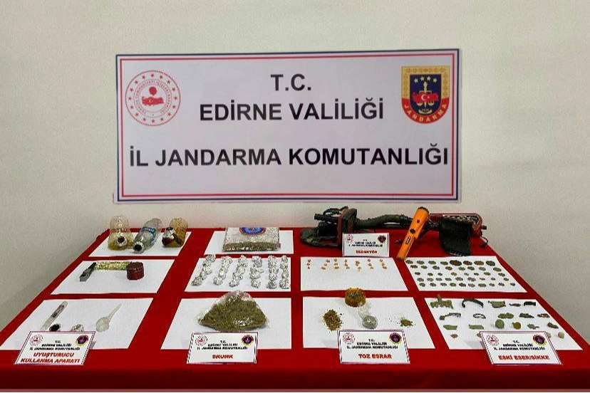 Uzunköprü İlçe Jandarma Komutanlığı, Edirne’nin Uzunköprü ilçesinin Çöpköy mahallesinde gerçekleştirilen operasyonlarda şunları ele geçirdi: 90 gram skunk, 20 adet uyuşturucu hap, 15 gram tütüne emdirilmiş uyuşturucu madde, 20 gram kenevir tohumu, bir adet uyuşturucu madde öğütme aparatı, 6 adet uyuşturucu madde kullanma aparatı, 3 adet metal arama dedektörü, 37 adet sikke, 22 adet metal obje ve bir adet Osmanlı dönemine ait mühür.