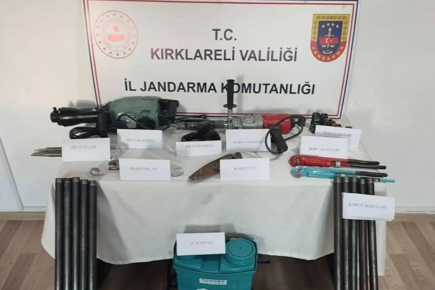 Alınan bilgiye göre, Kırklareli İl Jandarma Komutanlığına bağlı Kıyıköy Jandarma Karakol Komutanlığı ekipleri, 4 şahsı ekipmanlar ile kaçak kazı yaptıklarını fark etti. Ekipler tarafından düzenlenen operasyonda, B.K, A.0, Ö.K, S.K. isimli şahıslar izinsiz kazı yaptıkları esnada suçüstü yakalandı. Şahısların yakalandığı alanda yapılan aramalarda, 1 adet kırıcı hilti makinesi,1 adet delici karot makinesi, 1 adet hilti ucu, 1 adet yılan kamera, 4 adet boru anahtarı, 1 adet su pompası, 10 adet karot borusu, 1 adet karot ucu, 18 adet karot ekleme aparatı, 2 adet açık ağızlı anahtar ele geçirildi. Olayla ilgili şahıslar gözaltına alındı. Jandarma komutanlığındaki işlemleri tamamlanan şahıslar adliyeye sevk edildi.