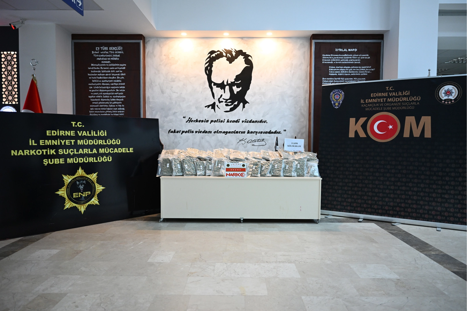 Kent girişinde durdurulan otomobilde, narkotik dedektör köpeği Kongar ile yapılan aramada, 11 kilo 50 gram skunk ele geçirildi.
