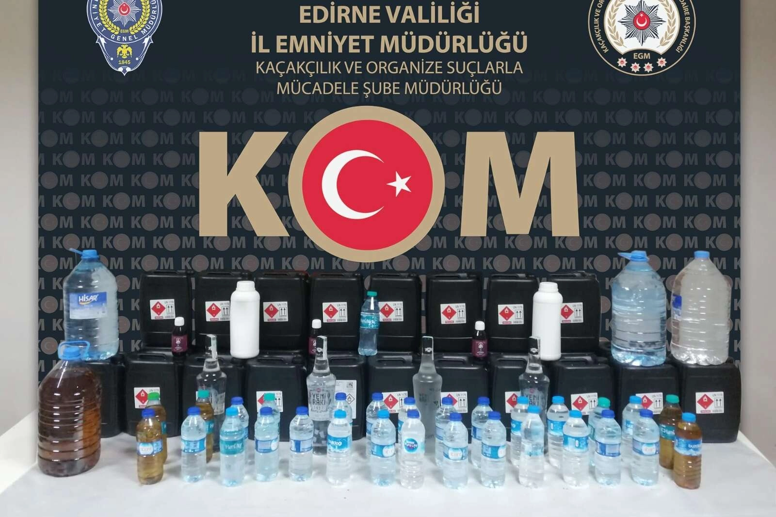 Yapılan aramalarda 140 litre etil alkol, 38 şişe sahte içki ve içki yapımında kullanılan malzeme ele geçirildi.