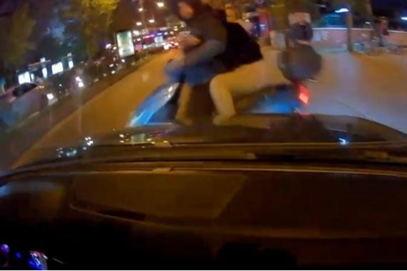 Otomobil sürücüsü ifadesi alınmak üzere karakola götürülürken kaza, araç kamerasına saniye saniye yansıdı.
