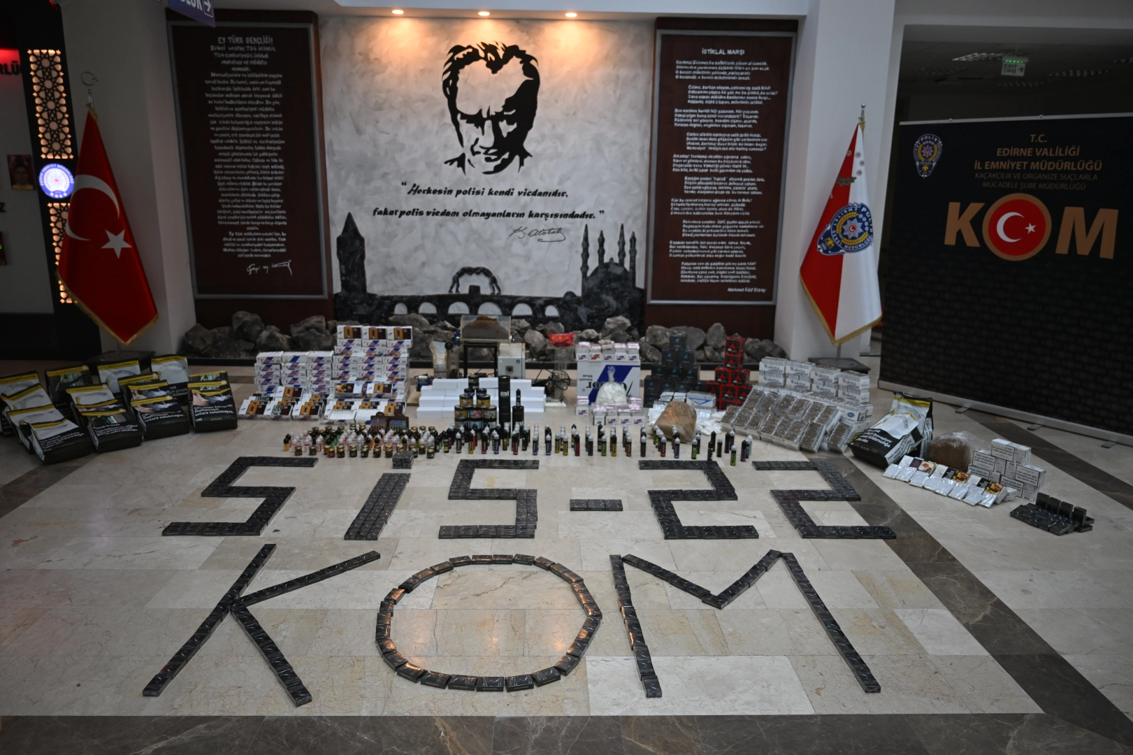 Aramalarda 26 bin 460 dolu makaron, 21 bin boş makaron, 142 şişe elektronik sigara likidi, 300 paket sigara, 2 bin 395 sigara filtresi, 5 kilogram tütün, 2 elektrikli sigara sarma makinesi, 60 paket sigara mentolü, nargile tütünü ve nargile kömürü ele geçirildi.