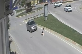 Otomobil sürücüsü ifadesi alınmak üzere karakola götürüldü. Kaza, bir iş yerinin güvenlik kamerasına saniye saniye yansıdı. Polis, kazayla ilgili inceleme başlattı.