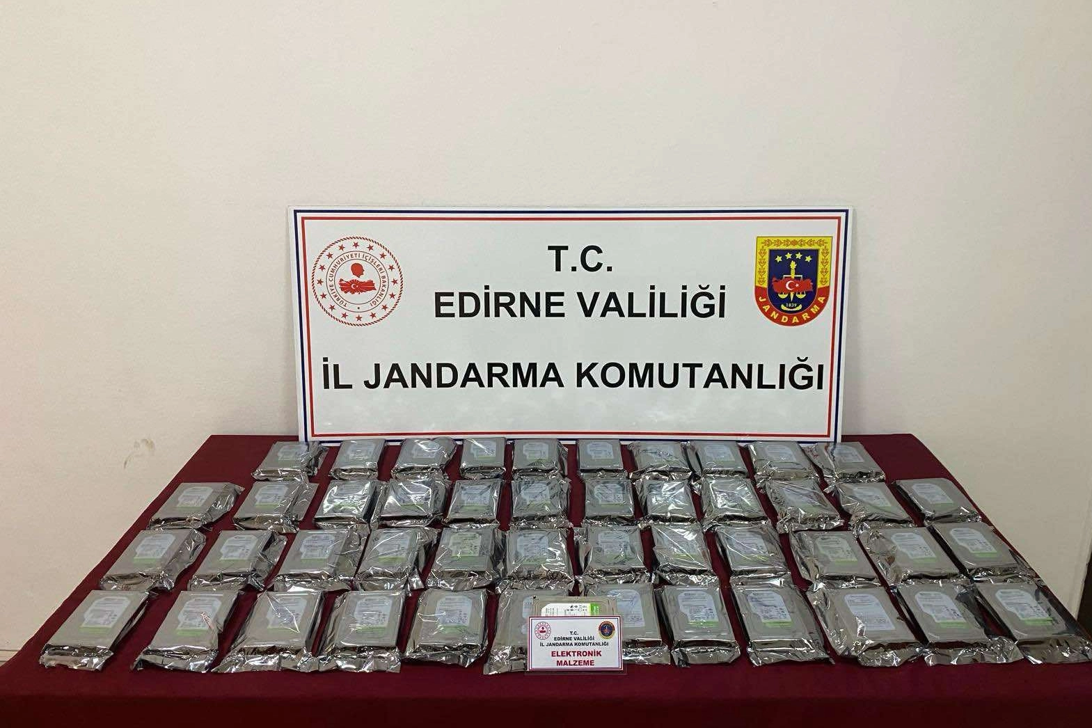 Merkez İlçe Jandarma Komutanlığı'nın sorumluluk bölgesinde gerçekleştirilen faaliyetler sonucunda, yabancı plakalı 2 araçta yapılan aramalarda piyasa değeri yaklaşık 188.000 TL olan 47 adet harddisk (bilgisayar depolama cihazı) ele geçirildi ve el konuldu.