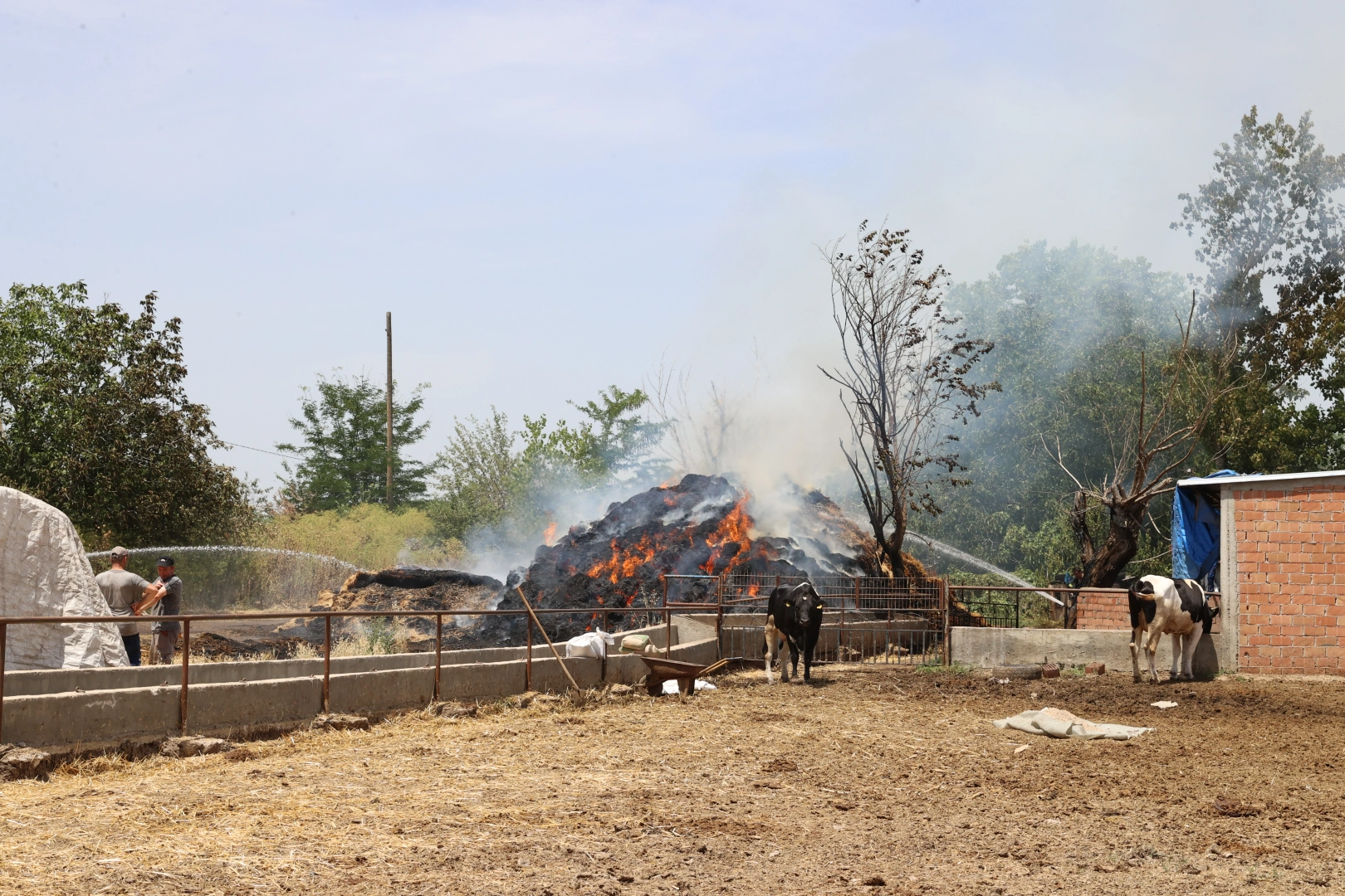 İtfaiye ekipleri balyaların bulunduğu bölümde çıkan yangını ahıra sıçramadan kontrol altına alarak söndürdü.