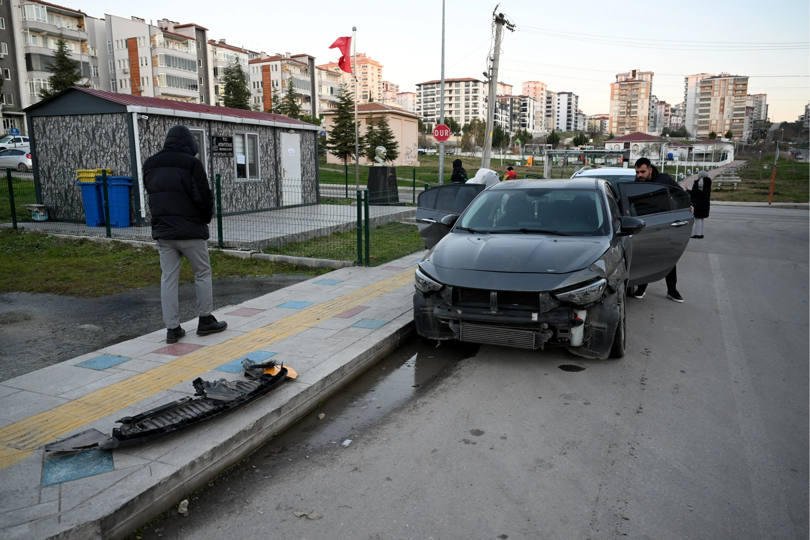 Atatürk Mahallesi Mithat Vardar Caddesi'nde bir apartmandan yola bırakıldığı iddia edilen su birikintisi, hava sıcaklığının sıfırın altına düşmesiyle zeminde buzlanmaya yol açtı.