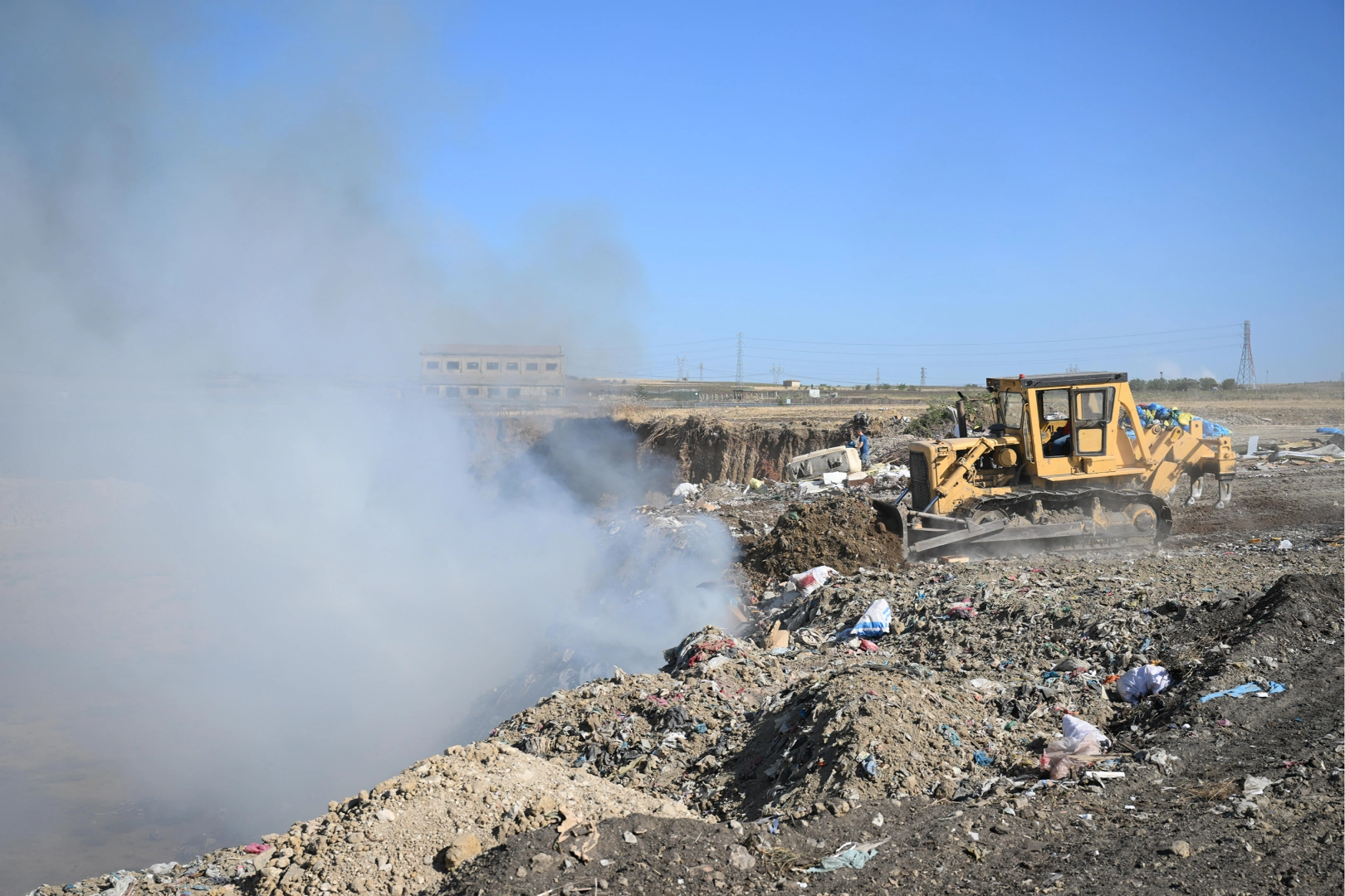 Yeniimaret Mahallesi'ndeki hafriyat döküm sahasında henüz belirlenemeyen nedenle yangın çıktı.