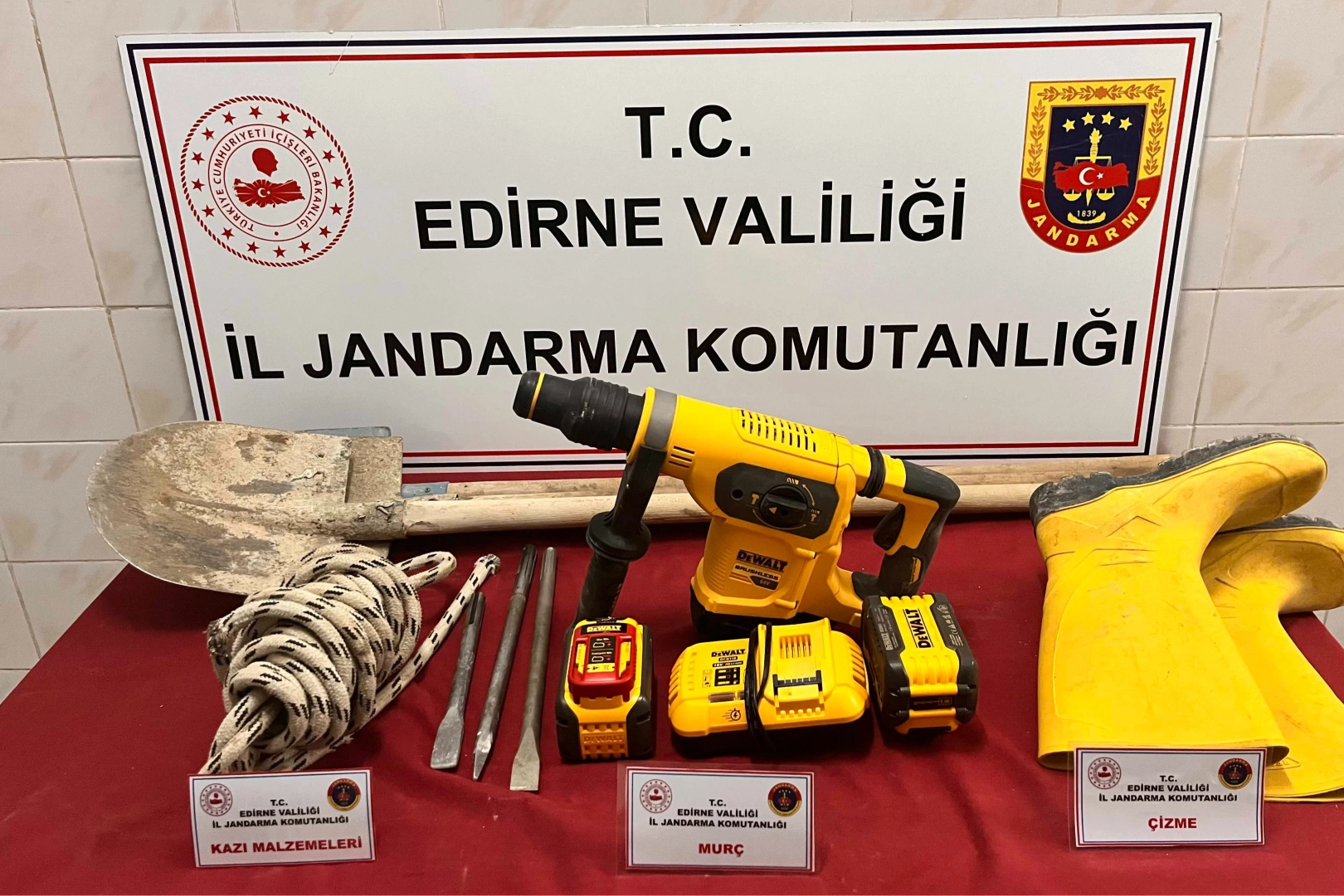 Edirne’de yapılan operasyonlar sonucu, Enez ilçesi Çavuşköy köyünde izinsiz kazı yapma girişiminde bulunan bir şüpheli yakalandı. Operasyon sırasında şüphelinin kazıda kullandığı bir hilti, üç kürek, bir kova, bir ip ve bir çift çizme ele geçirildi.