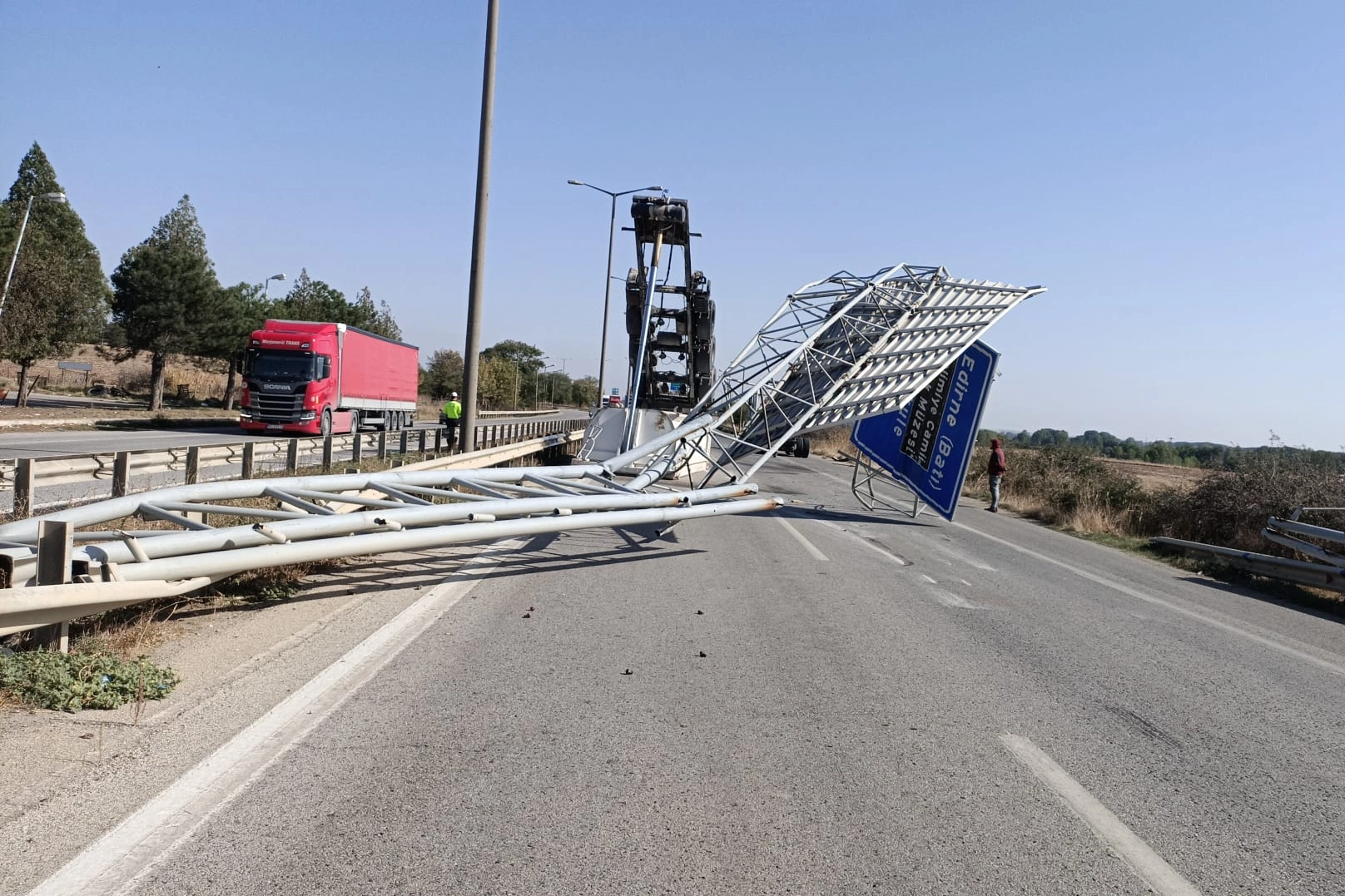 Kaza nedeniyle aksayan trafik aracın ve yön tabelasının kaldırılmasının ardından normale döndü.