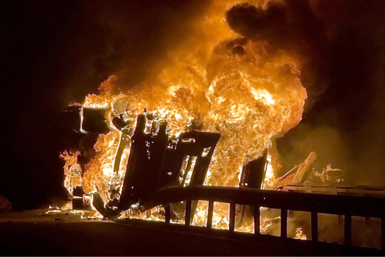 Alev alev yanan TIR kullanılamaz hale gelirken, polisin olayla ilgili incelemesi sürüyor.