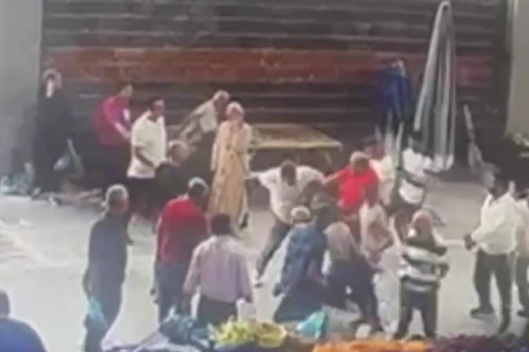 Güvenlik kamerasına da yansıyan olayda, tartışmanın büyümesi üzerine pazarcı esnafı, müşteriyi tartakladı.