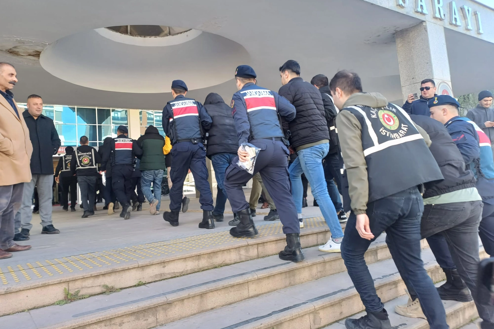 Gözaltına alınan kamu görevlisi şüphelilerin Edirne İl Jandarma Komutanlığı'ndaki işlemeleri tamamlandı. Yoğun güvenlik önlemleri altında adliyeye sevk edilen şüphelilerin adliyedeki işlemleri sürüyor.