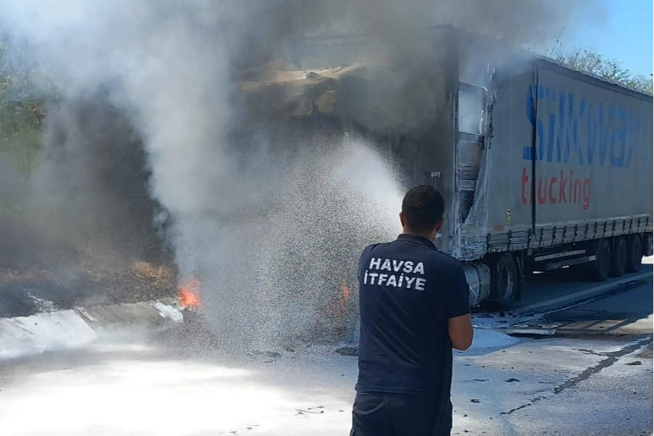 Alınan bilgiye göre, sürücüsünün ismi henüz öğrenilemeyen yabancı plakalı TIR'ın çekici kısmında bilinmeyen bir nedenle yangın çıktı. Kısa sürede büyüyen alevleri fark eden sürücü aracı durdururken, ihbar üzerine bölgeye Havsa Belediyesi İtfaiyesi, jandarma ve sağlık ekipleri sevk edildi.