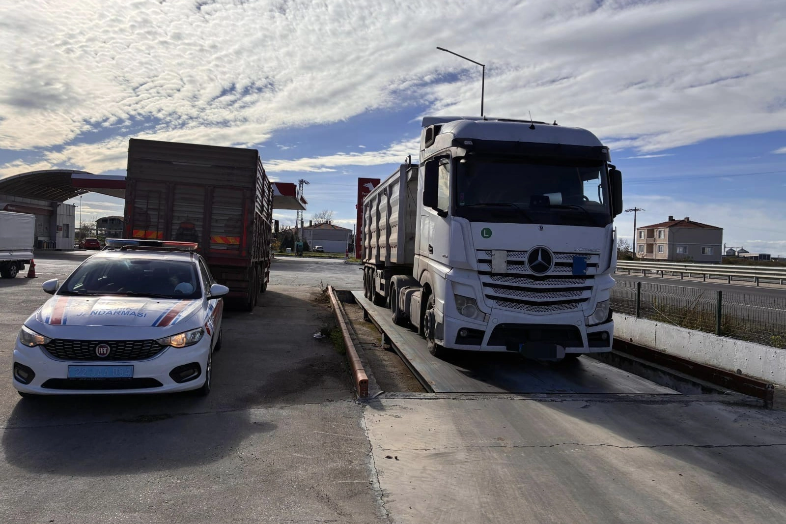 Edirne’nin Uzunköprü ilçesinde trafik jandarma timi tarafından Hamidiye-Harmanlı köy yolu üzerinde yapılan denetimde, yük taşıyan bir tırın azami yüke göre yüzde 25 fazla yükleme yaptığı ve taşıma irsaliyesi olmadan yük taşıdığı tespit edildi. Ekipler, Karayolları Trafik Kanunları kapsamında araç sahibine 59 bin 526 TL trafik idari para cezası kesti.