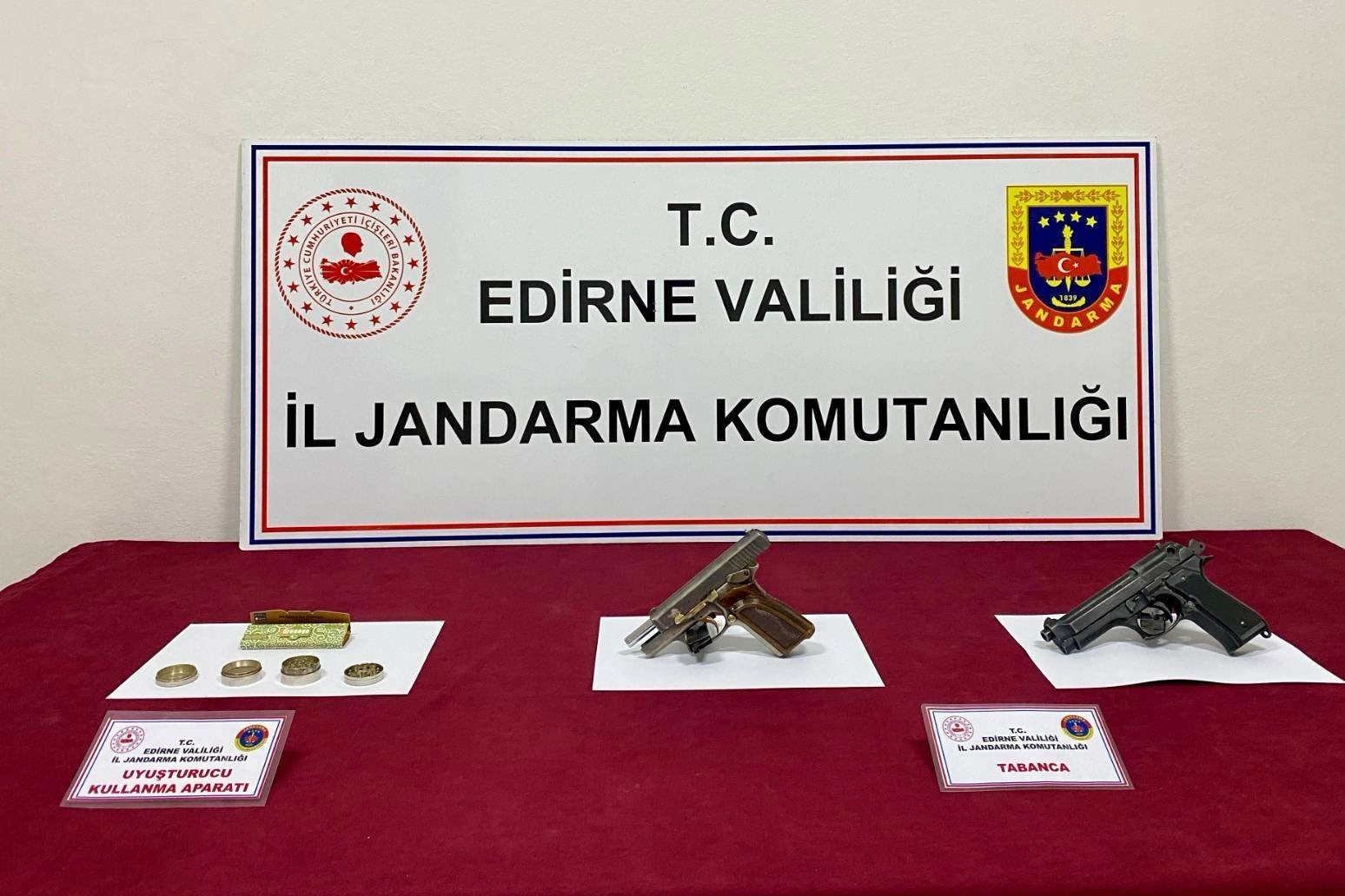 Edirne’de gerçekleştirilen uyuşturucu madde arama operasyonunda, 6 adrese eş zamanlı olarak yapılan aramalarda, 1 adet uyuşturucu kullanma aparatı, 1 paket uyuşturucu madde kullanma kağıdı ve 2 adet tabanca ele geçirilerek el konuldu.