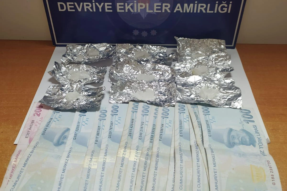 Şüphelilerin üst aramalarında 38 gram sentetik uyuşturucu, uyuşturucu kullanma aparatı ve 1600 lira para ele geçirildi.