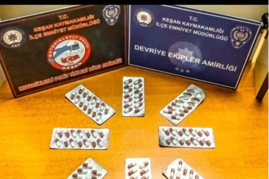Keşan ilçesinde polis tarafından üzerinde 103 sentetik uyuşturucu hap ele geçirilen E.İ., gözaltına alındı.