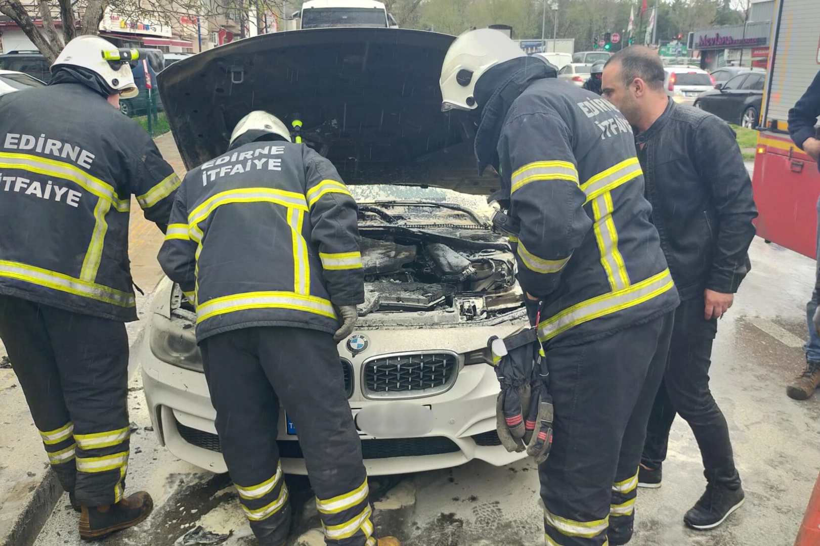 Edirne'nin Abdurrahman Mahallesi Şehit İstiklal Vardar Caddesi'nde seyreden sürücülüğünü C. B.'nin yaptığı 34 DC* 6** plakalı otomobil aniden alev aldı.