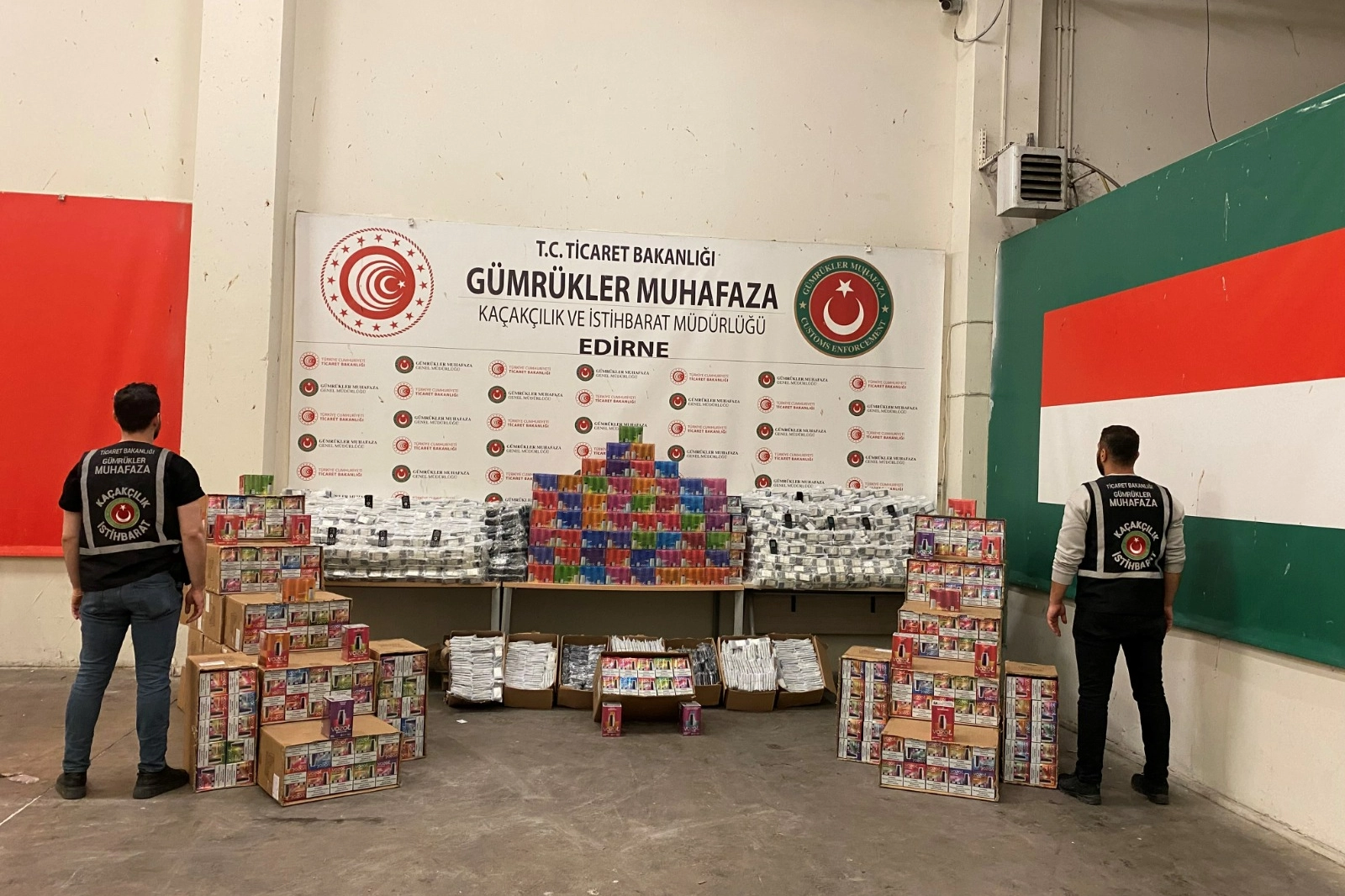 Edirne Gümrük Muhafaza Kaçakçılık ve İstihbarat Müdürlüğü ekipleri, Yunanistan'dan Türkiye'ye kaçak yollarla elektronik sigara ve cep telefonu getirileceği bilgisi üzerine harekete geçti. Şüpheli aracın Türkiye'ye giriş yapmasının ardından fiziki takip başlatan ekipler, Edirne ve Çanakkale'nin Gelibolu ilçesinde düzenledikleri operasyonda 5 şüpheliyi gözaltına aldı. Araçta yapılan aramada 12 bin 545 cep telefonu ile 10 bin elektronik sigara ele geçirildi.