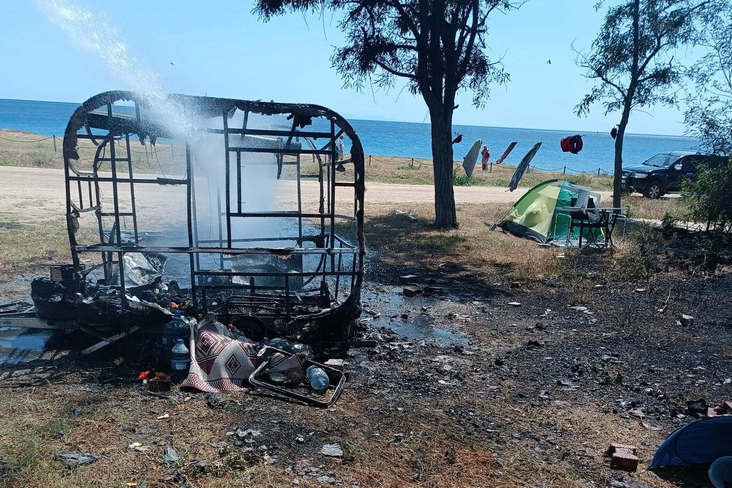 Gülçavuş köyü sahilinde park halindeki karavanda henüz belirlenemeyen nedenle yangın çıktı.