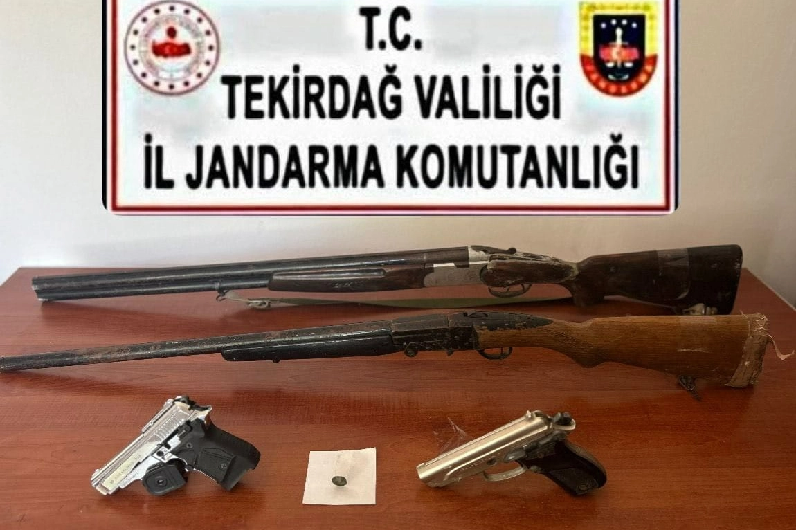 Aramada, 2 ruhsatsız av tüfeği ve 2 ruhsatsız tabanca geçirildi, şüpheli gözaltına alındı.