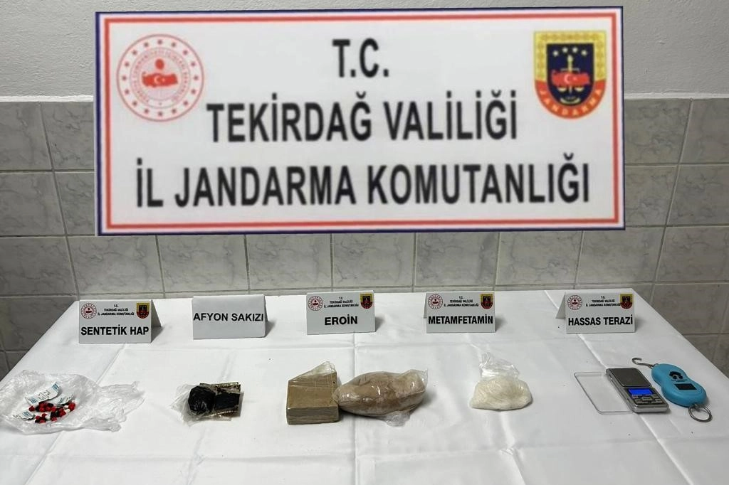 Tekirdağ İl Jandarma Komutanlığınca yapılan çalışmalar sonucunda, Çorlu Şeyhsinan Mahallesi'nde M.H. isimli Türkmenistan uyruklu şahsın evinde uyuşturucu bulundurduğu tespit edildi. Şüphelinin evinde yapılan arama sonucunda, 542 gram eroin, 66 gram afyon sakızı, 75 gram metamfetamin, 21 adet sentetik hap, 2 adet hassas terazi, ele geçirildi. M.H. isimli şahıs adlı işlemleri sonrası tutuklandı.