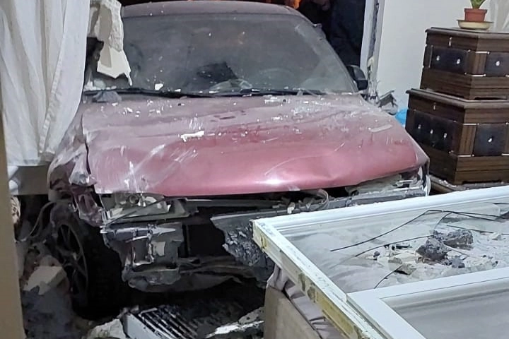 Büyük bir gürültüyle sarsılan ev sakinleri, panikle yatak odasına koştu. Kapıyı açtıklarında gördükleri manzara karşısında şaşkına dönen Çolak ve ailesi, kısa bir süre sonra sürücüyü araçtan çıkardı.
