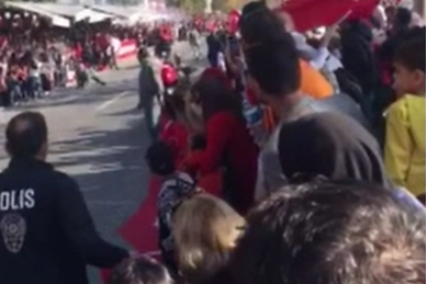 Süleymanpaşa sahil yolunda gerçekleştirilen kutlamalar sırasında, yunus timleri gösteri yaparken vatandaşların gösteri alanına girmemesi için bölgede önlem almaya çalışan 2 polise, gösteri yapan bir motosikletli polis çarptı. Kazayı çevredeki vatandaşlar endişeyle izlerken, hafif yaralı polisler olay yerinde sağlık ekiplerince tedavi edildi. Kaza anı ise kameralara yansıdı.