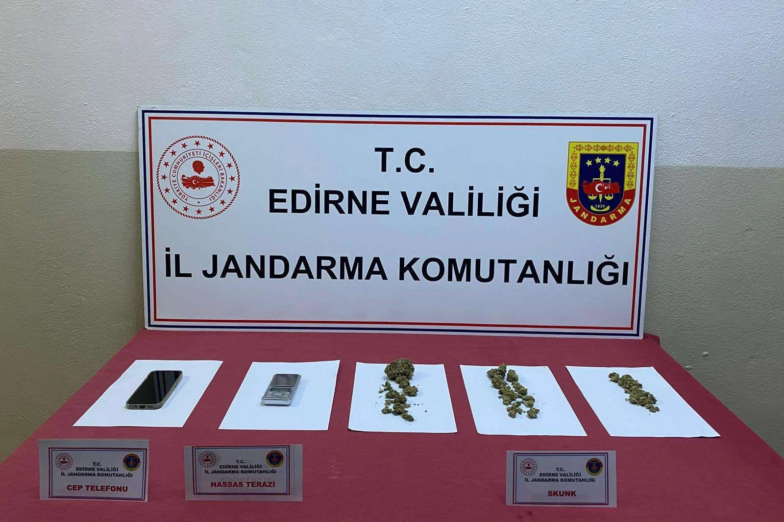 Havsa İlçe Jandarma Komutanlığı sorumluluk bölgesinde yapılan bir operasyon sonucunda, H.K. isimli şahsın sürücülüğünü yaptığı araçta arama yapıldı. Aramada, satışa hazır halde paketlenmiş 40 gram skunk uyuşturucu madde, 1 adet hassas terazi ve 1 adet cep telefonu ele geçirilerek el konuldu.